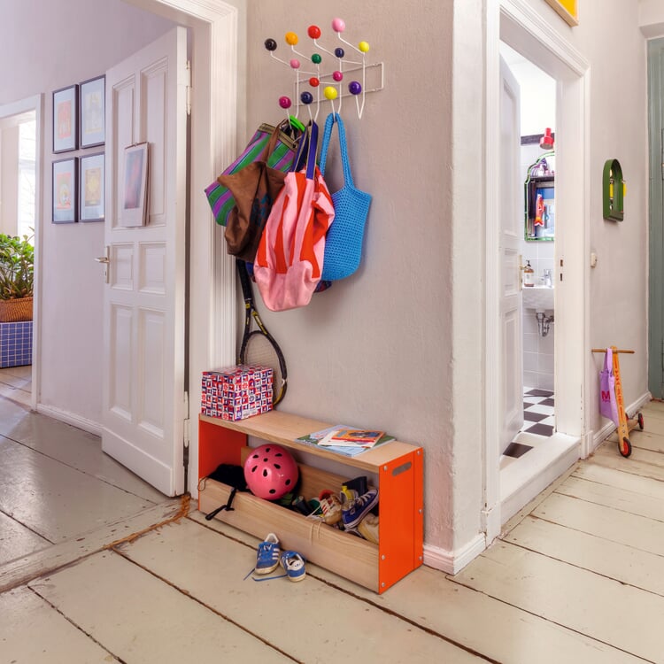 Hocker oder Bank und Beistelltisch ANNA macht uns da das Leben leicht: Sie kommt dort zum Einsatz, wo sie gebraucht wird – als Sitzgelegenheit, Ablage und Sammelstelle für alles, was griffbereit sein soll.