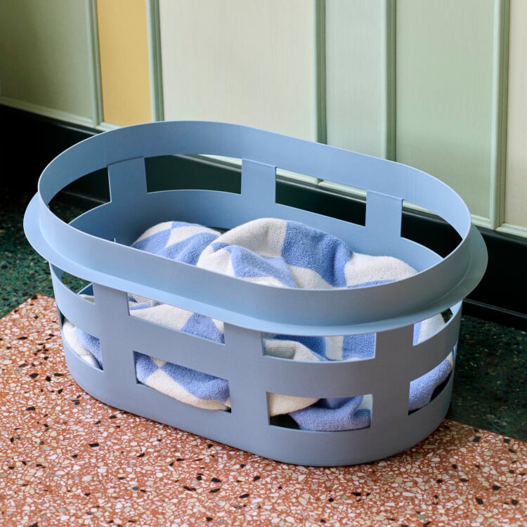 LAUNDRY BASKET ist kleiner stapelbarer Ordnungsspender in Haushalt, Bad und Büro. Für Wäsche, Zeitung und Zeitschriften, formschön und gut handhabbar. Dank des robusten Materials auch im Außeneinsatz geeignet, zum Beispiel für die Apfelernte.