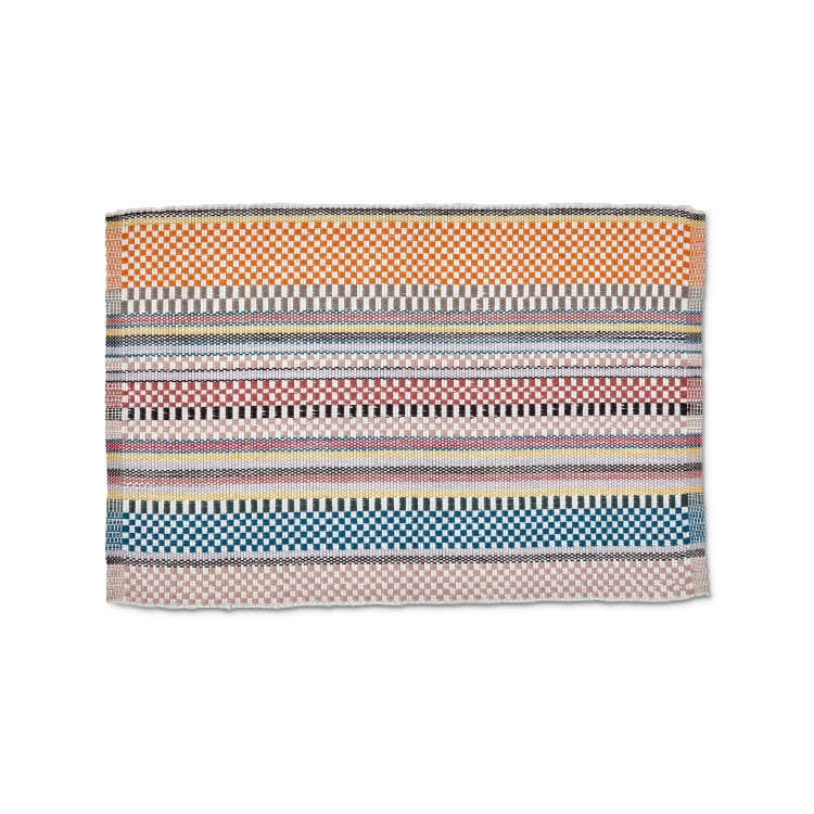 Farbenfroher Mustermix. Diese textile Kollektion für drinnen und draußen ist aus 100% recyceltem PET gewebt – dies macht die Produkte nicht nur ökologisch sinnvoll, sondern ebenso schmutzabweisend und pflegeleicht. Das weiche Material und die frische Farbgebung sorgen für hohen Komfort und gute Laune. Das Material ist licht- und witterungsbeständig und bei 30° C in der Maschine waschbar. Alle Produkte der Kollektion werden fair produziert und unter Einhaltung von sozialen Standards in Indien handgearbeitet. Von den Lizenzgebühren für das GoodWeave-Gütesiegel werden unter anderem Sozial- und Bildungsprogramme in Indien und Nepal finanziert.