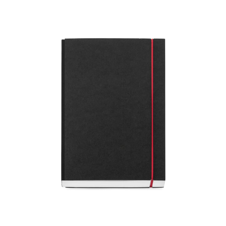 Gebundene Bücher, fadengeheftet: hochwertige reinweiße Buchblock-Papiere mit Perforierung im Bund, mit rotem Rundgummi von Splinten gehalten.